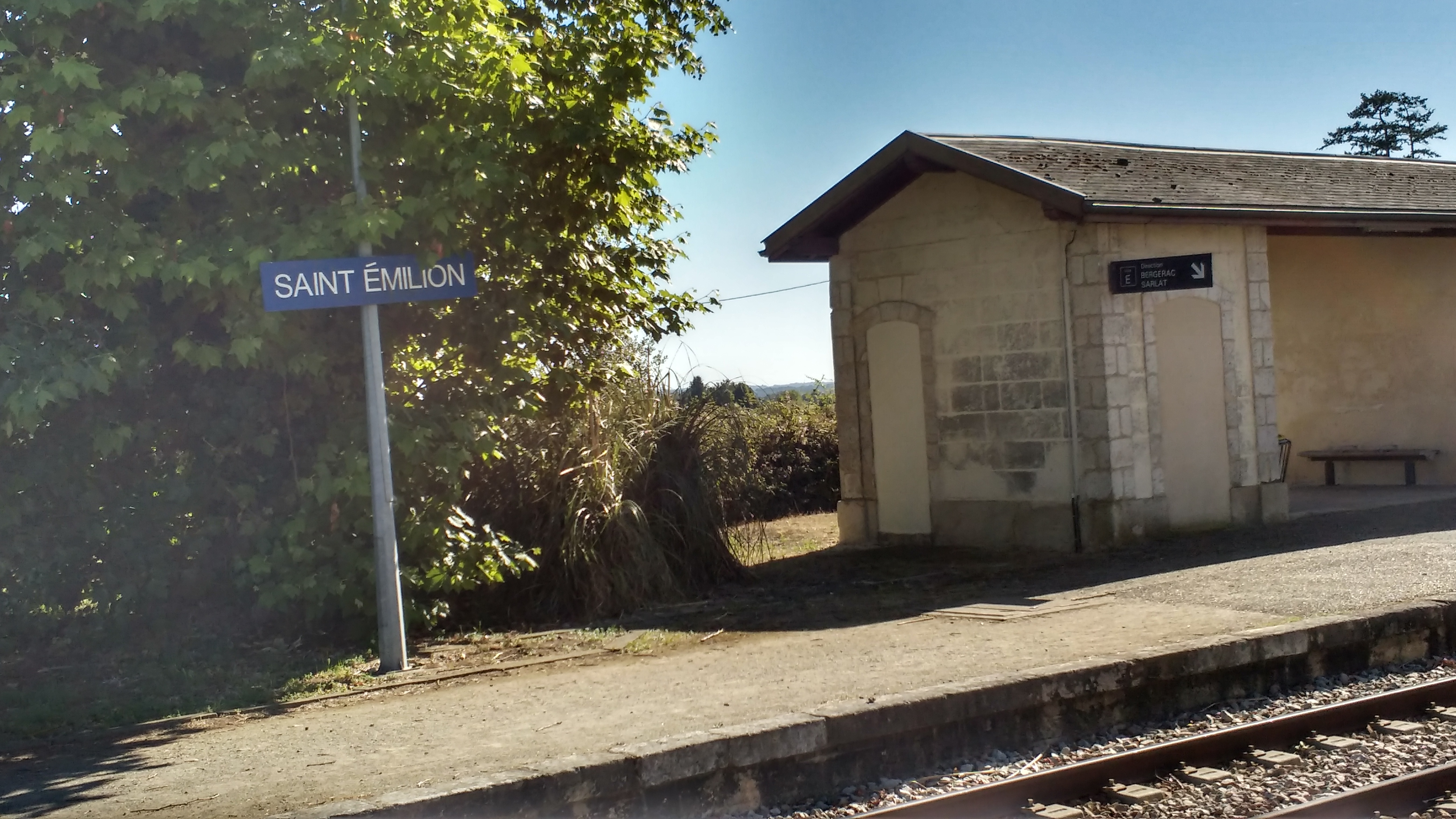 Attention: la gare, isolée, se situe à 20 min à pied du magnifique village Saint Emilion